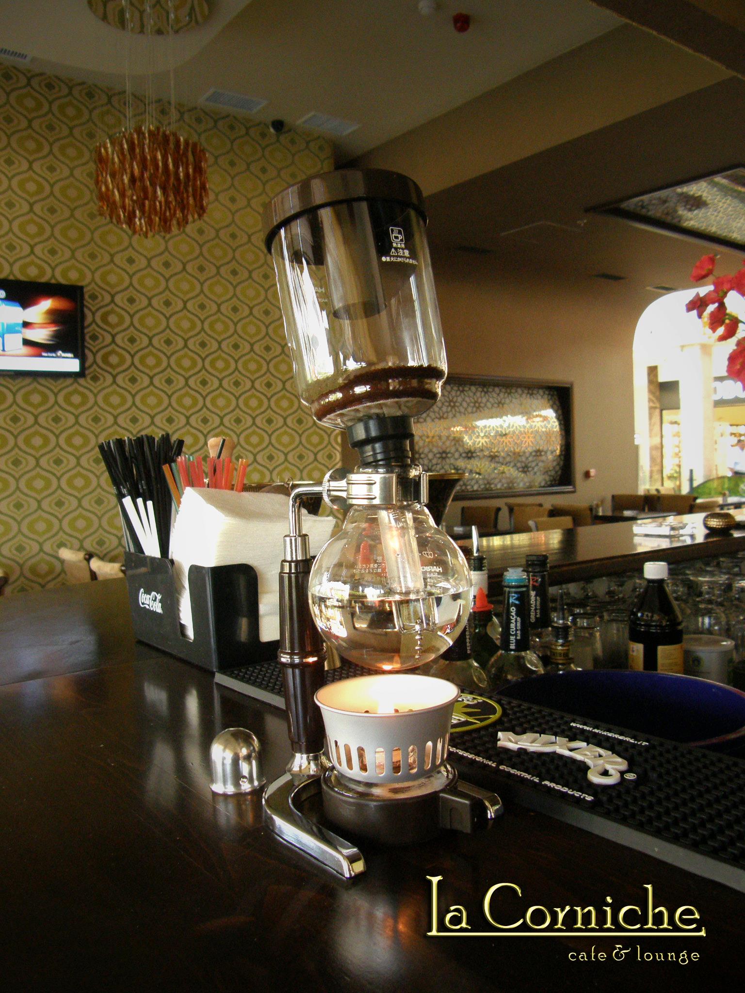 La Corniche se diferenÅ£iază prin produse ÅŸi servicii cu specific Libanez. Pe lângă cafelele de origine ÅŸi deserturile orientale, La Corniche este prima opÅ£iune când vine vorba de fumat narghilea. În locaÅ£iile La Corniche pasionaÅ£ii au posibilitatea de a savura o “Narghila” cu un tutun de calitate ÅŸi aromat într-un spaÅ£iu bine aerisit.