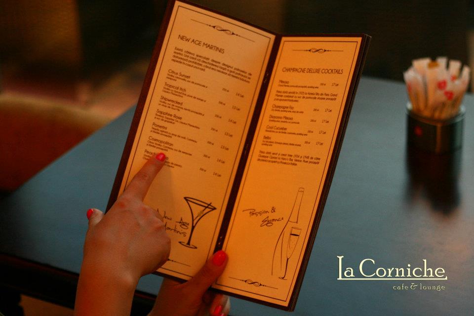 La Corniche a luat fiinţă în anul 2007 ÅŸi în prezent numără trei cafenele în orasul IaÅŸi (Moldova Mall, Iulius Mall ÅŸi în Complexul Palas). Conceptul implică locaÅ£ii cu priveliÅŸti deosebite, îmbogăţite prin amenajări cu influenÅ£e orientale, în care clientul să se simtă cufundat într-o adevărată oază de relaxare.