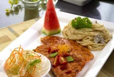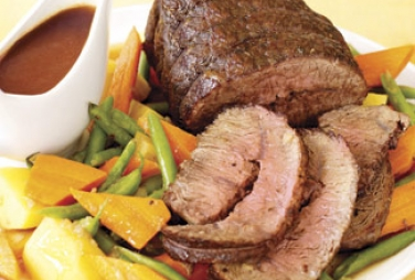 Pentru 10 portii: 1,500 kg carne de porc pentru friptură, 250 ml supa, 100 ml vin, 200 ml ulei, 400 g morcovi, 300 g mazare conservata, 300 g fasole verde conservata, 100 g făina, 1,500 kg cartofi, 250 ml lapte, 1 leg. verdeata, 150g unt, sare.